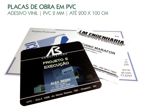 PLACAS DE OBRA E FOTOS EM PVC E EUCATEX