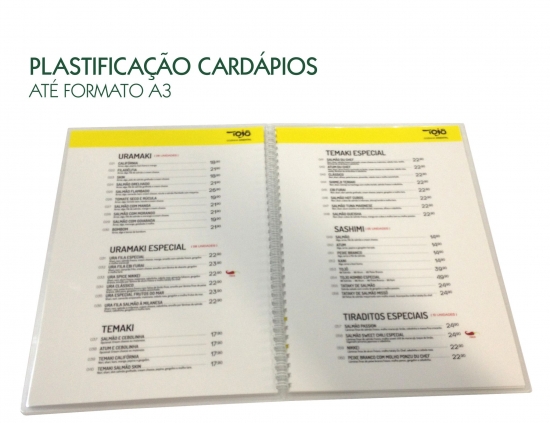 PLASTIFICACAO ATE FORMATO A3 E CRACHAS | CATALOGOS | TRABALHOS DIVERSOS